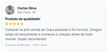 A edição de luxo em capa dura traz acabamento premium com detalhes em relevo e dourado, tornando-se não apenas um álbum de figurinhas, mas uma peça de colecionador que registra a história do futebol mundial.