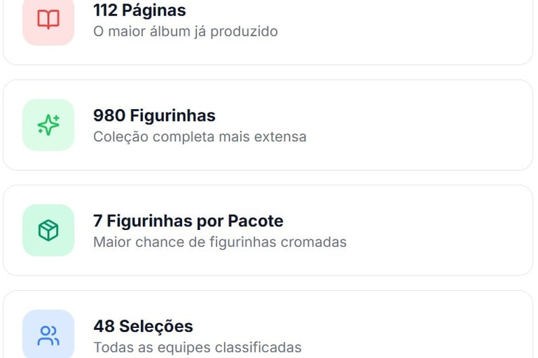 Cada pacote contém 5 figurinhas oficiais, incluindo variantes raras nas versões Ouro, Bordô e Bronze que se tornaram os itens mais procurados entre colecionadores de todo o Brasil.